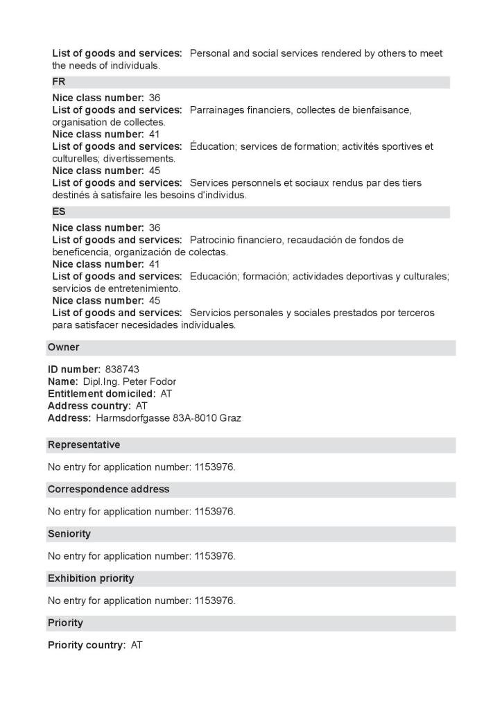 Es wurde der Antrag MA1 NATIONALE MARKENANMELDUNG für eine Wortbildmarke für die Klassen 36, 41 und 45 gestellt . Markeninhaber ist der Großmeister von Delo-Österreich.